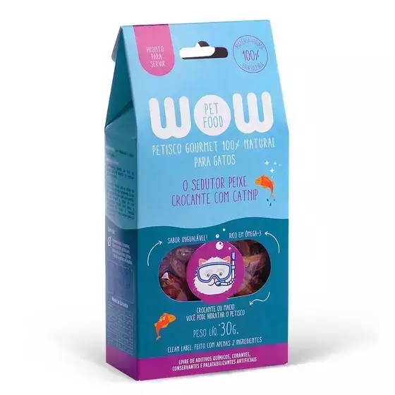 Petisco Natural WOW Pet Food para gatos feito de peixe, catnip e nada mais!